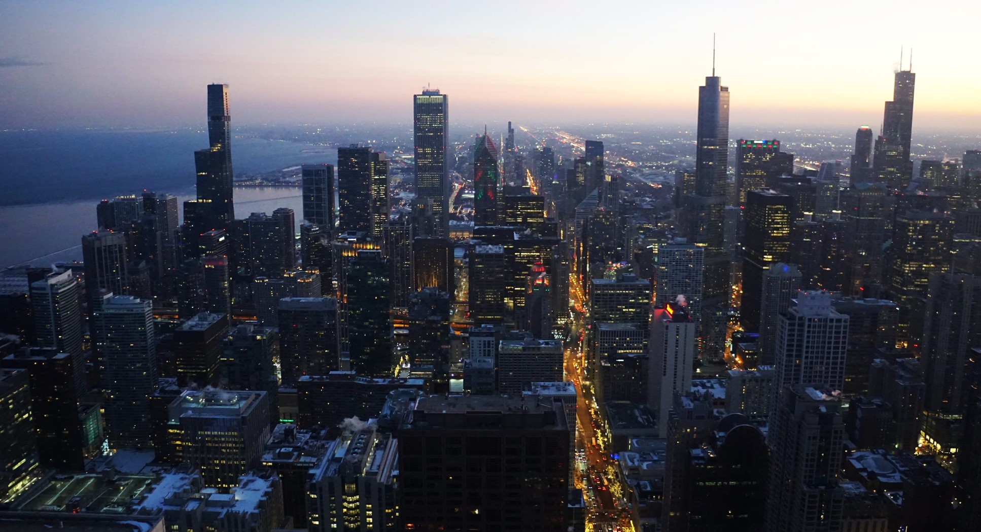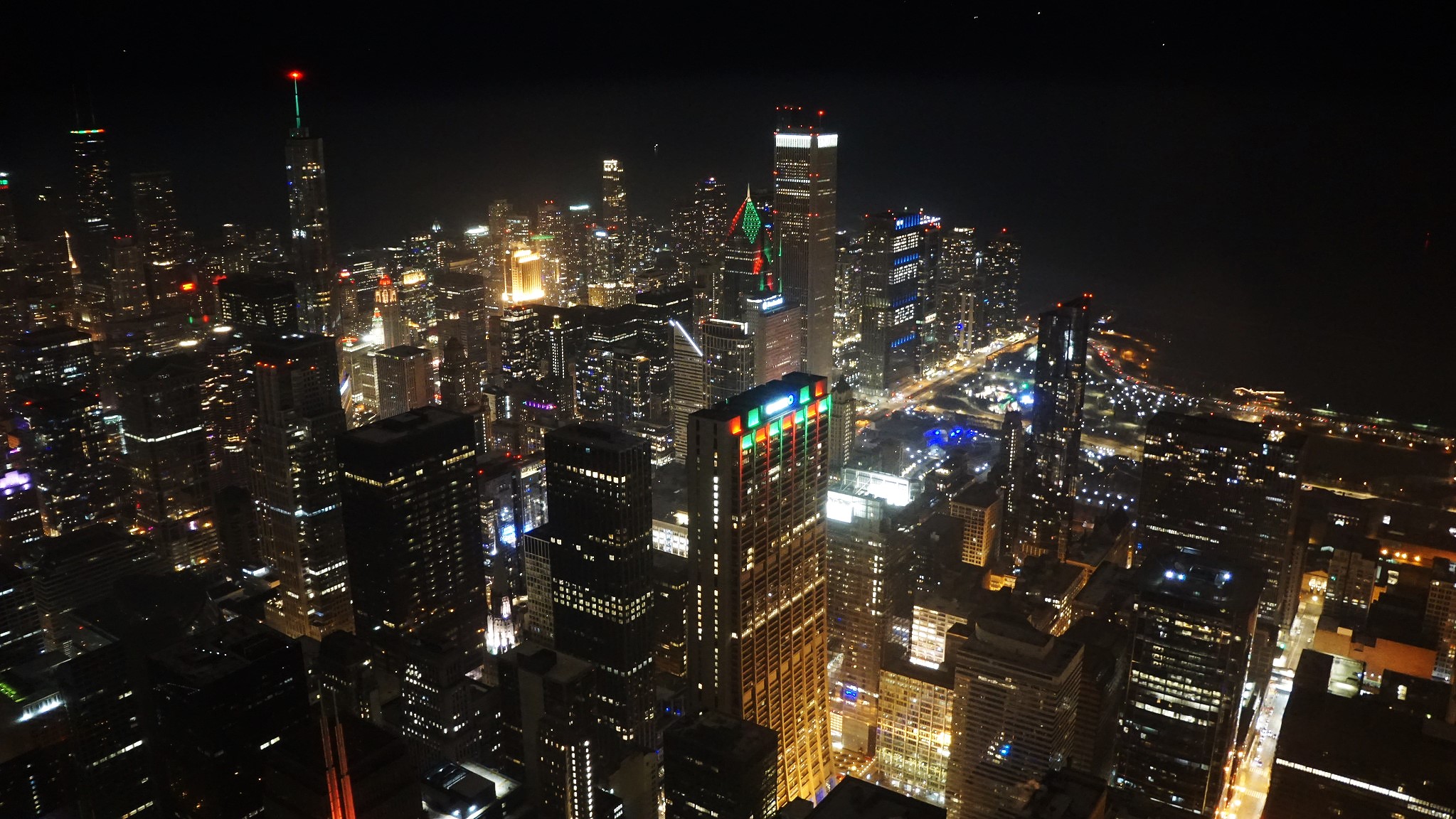 C’est un des plus grands buildings des Etats Unis et le plus haut de Chicago. Nous y sommes allés de nuit.