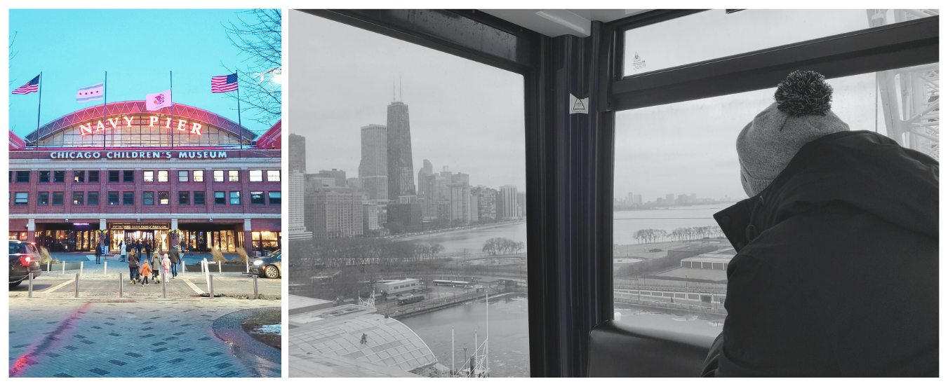 En plus d’une très jolie vue sur la skyline de Chicago, on y trouve aussi une multitude de magasins, des souvenirs, le Build a Bear pour construire son ours en peluche. Nous avons même fait un labyrinthe de glaces (assez rigolo) et un tour de grande roue !