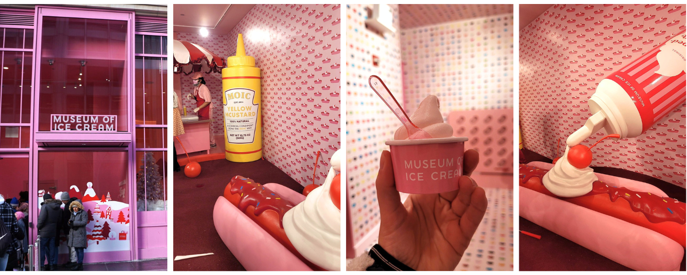 Nous sommes allés au musée de la glace (Ice Cream Museum). C’était très « pop » comme ambiance (rose bonbon), les décors sont certes très bien faits, mais c’est relativement petit. Au début on nous vend le truc avec « glaces à volonté! », mais les glaces proposées ne sont pas les glaces aux parfums de base… au premier stand, la glace était mentholée, la deuxième au goût de hot dog (avec moutarde et cornichons s’il vous plait), et la troisième au chewing-gum. Il y a aussi un stand de barbapapa. Bref, mise à part les décors qui sont sympas (mini golf au milieu de donuts géants, piscine à « balles »…) je n’ai pas trouvé que ça valait la peine pour le prix (pour 2, on a payé 92$!).