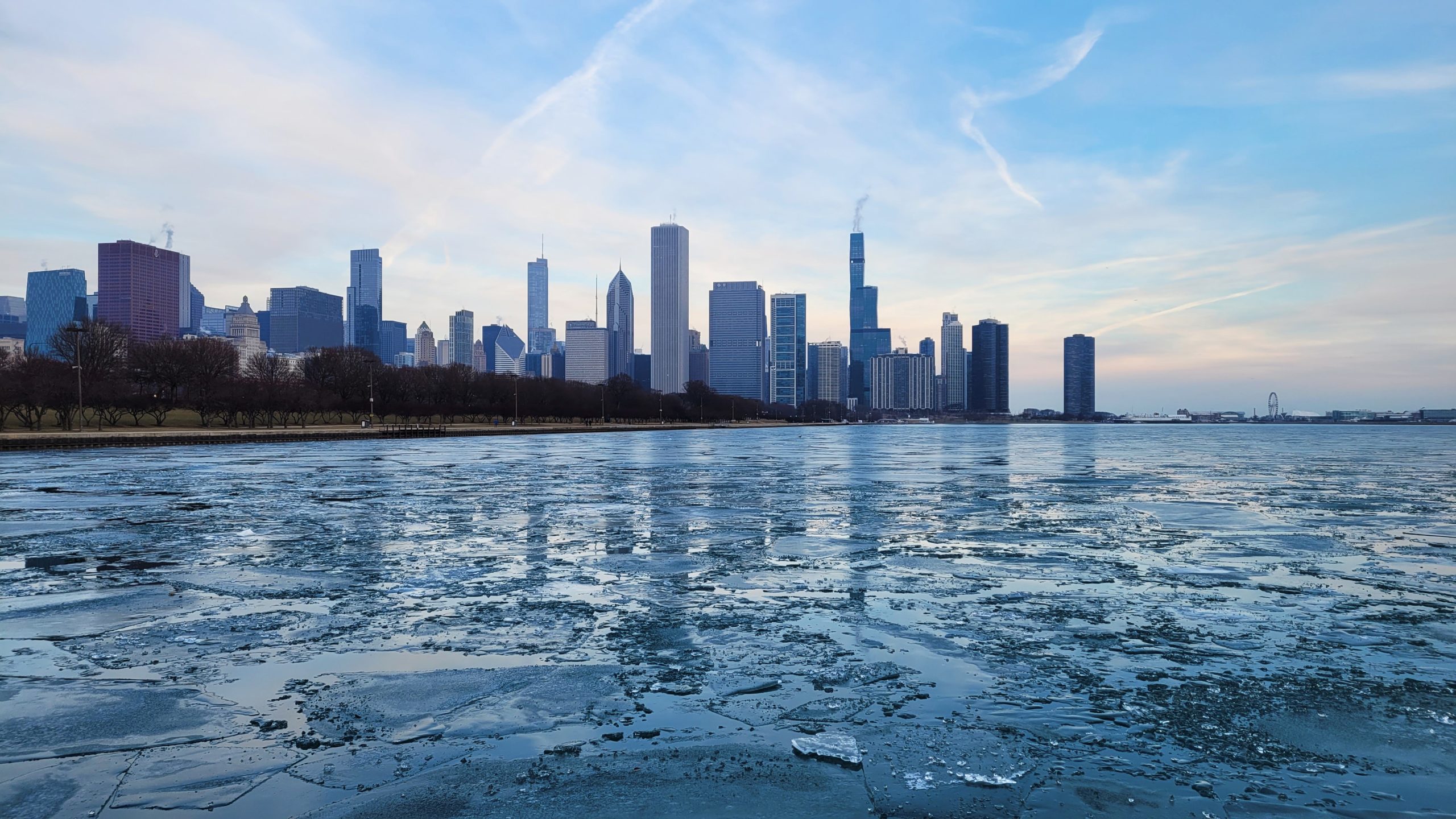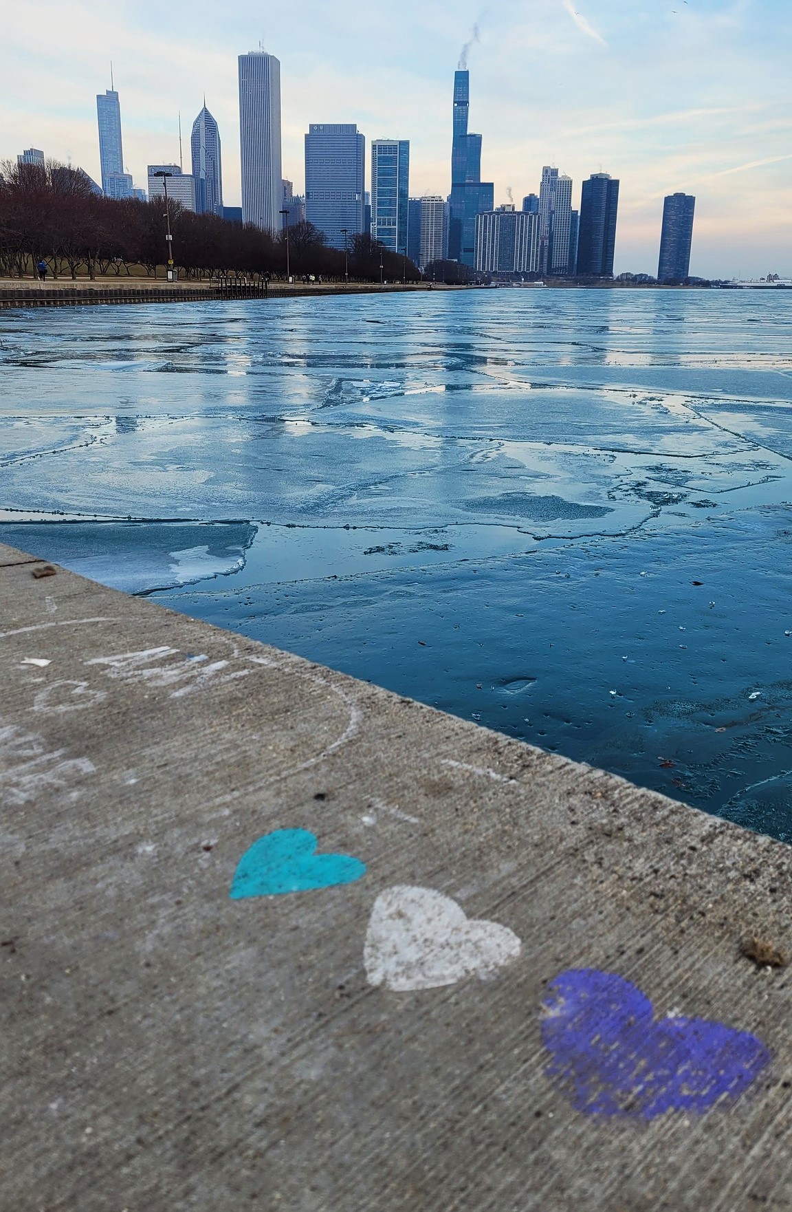 La vue sur Chicago depuis ici est superbe ! Il y avait de la neige, les bords gelés : magnifique.