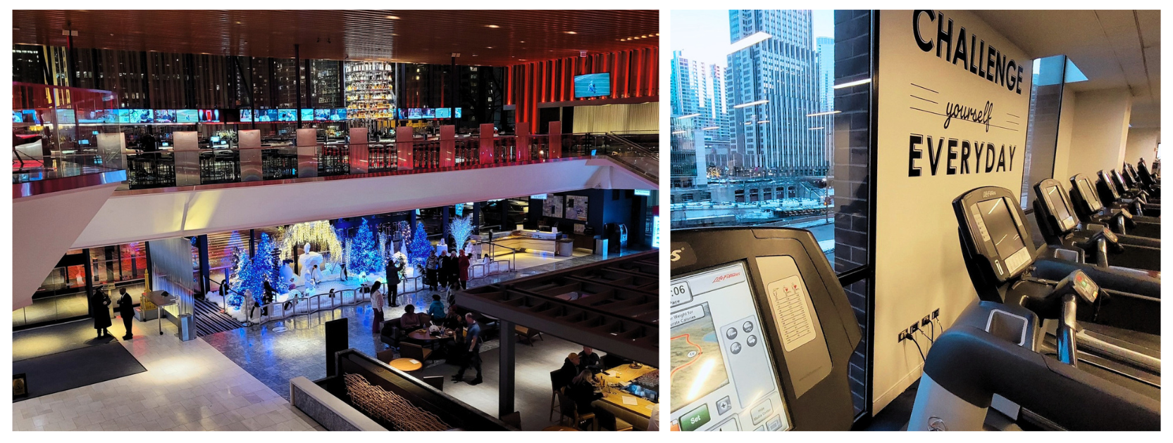 L’hôtel a une jolie salle de sport avec beaucoup d’appareils. J’y allais parfois le matin pour commencer la journée sur un tapis de course avec la vue sur les buildings au lever du soleil.