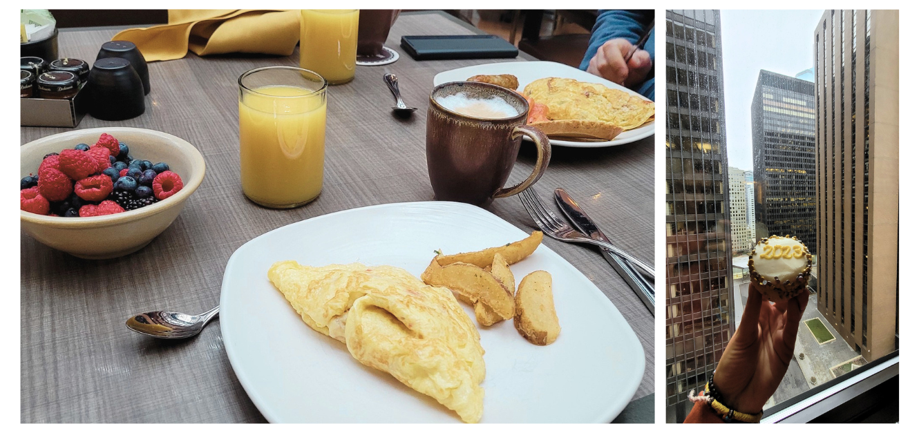 Il y avait un restaurant dans l’hôtel (même plusieurs), mais celui qu’on faisait toujours proposait le petit déjeuner buffet le matin (pour 60$ à deux). Le choix était top : des fruits frais, différents types de pains, un cuisinier qui faisait les omelettes avec les ingrédients qu’on voulait, du chaud, du froid, du sucré, du salé.