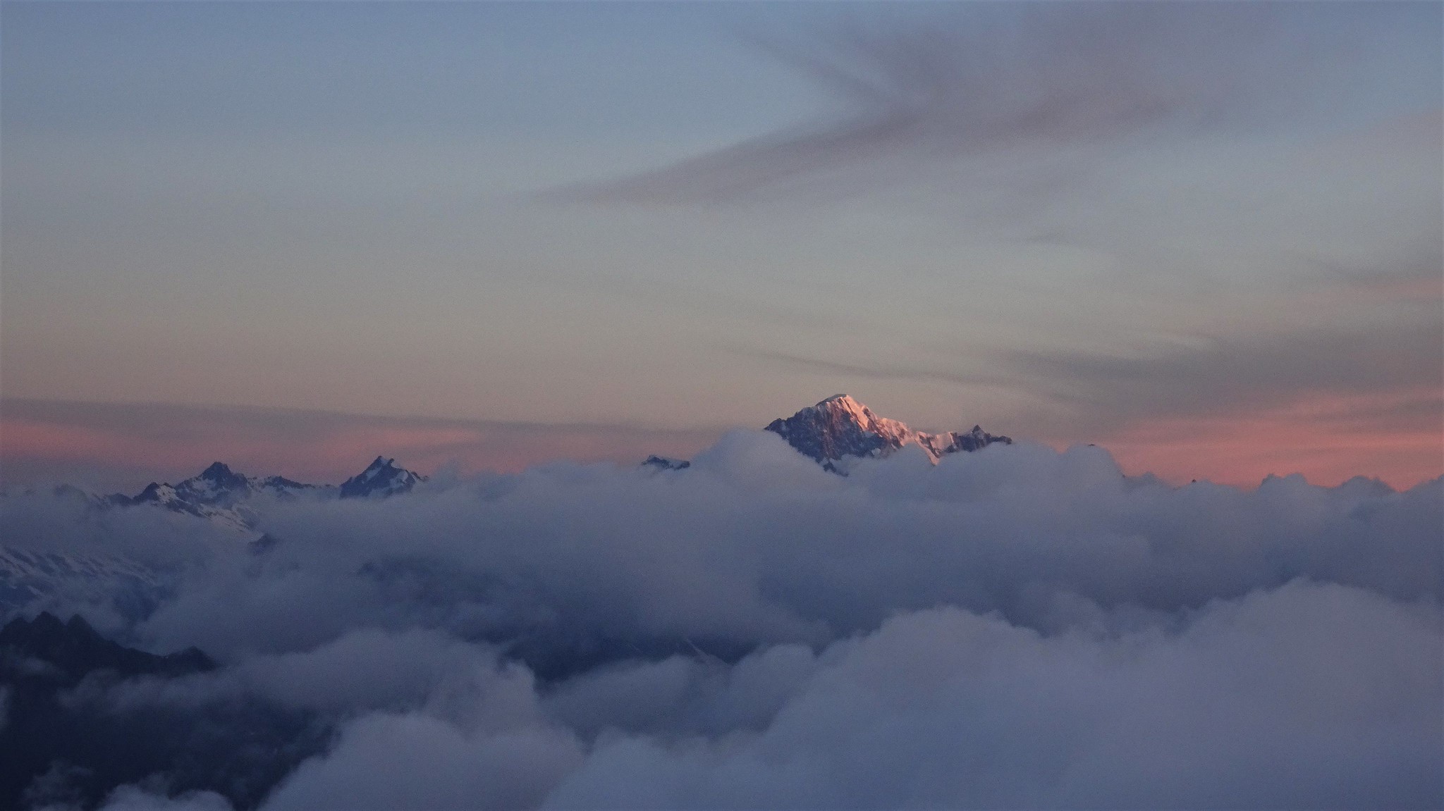 Je vois les nuages monter, mais je croise le doigts pour qu’ils n’atteignent pas les 4000 m d’altitude aujourd’hui. C’est magnifique cette mer de nuages.
