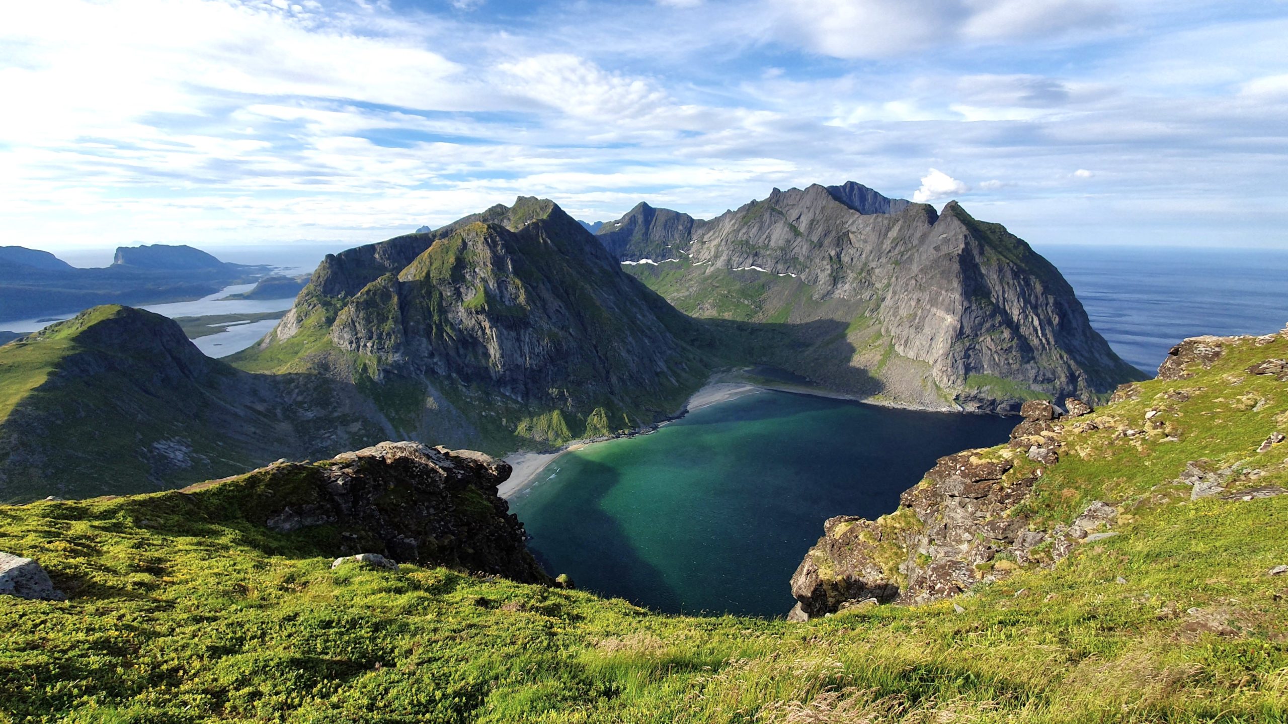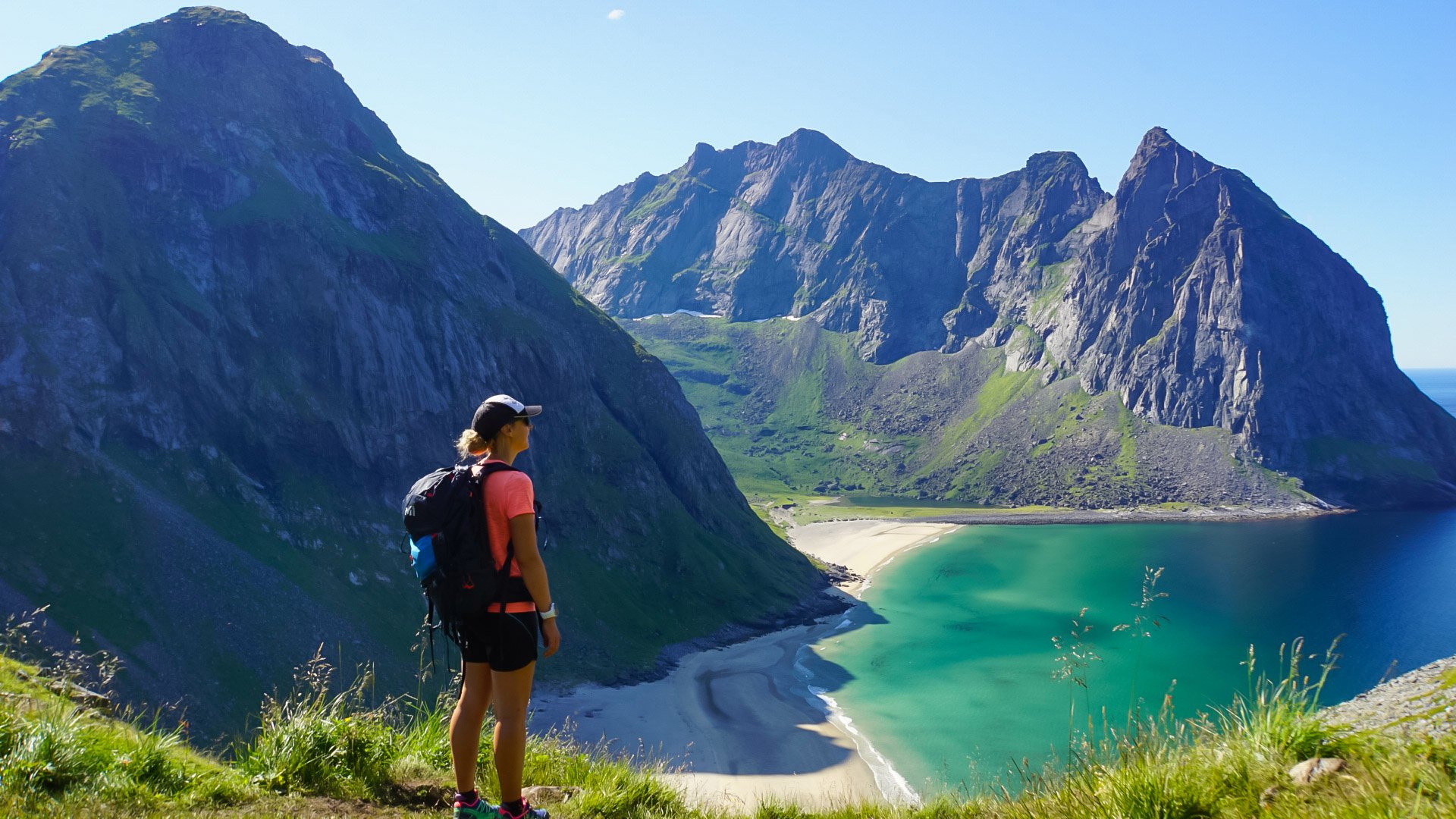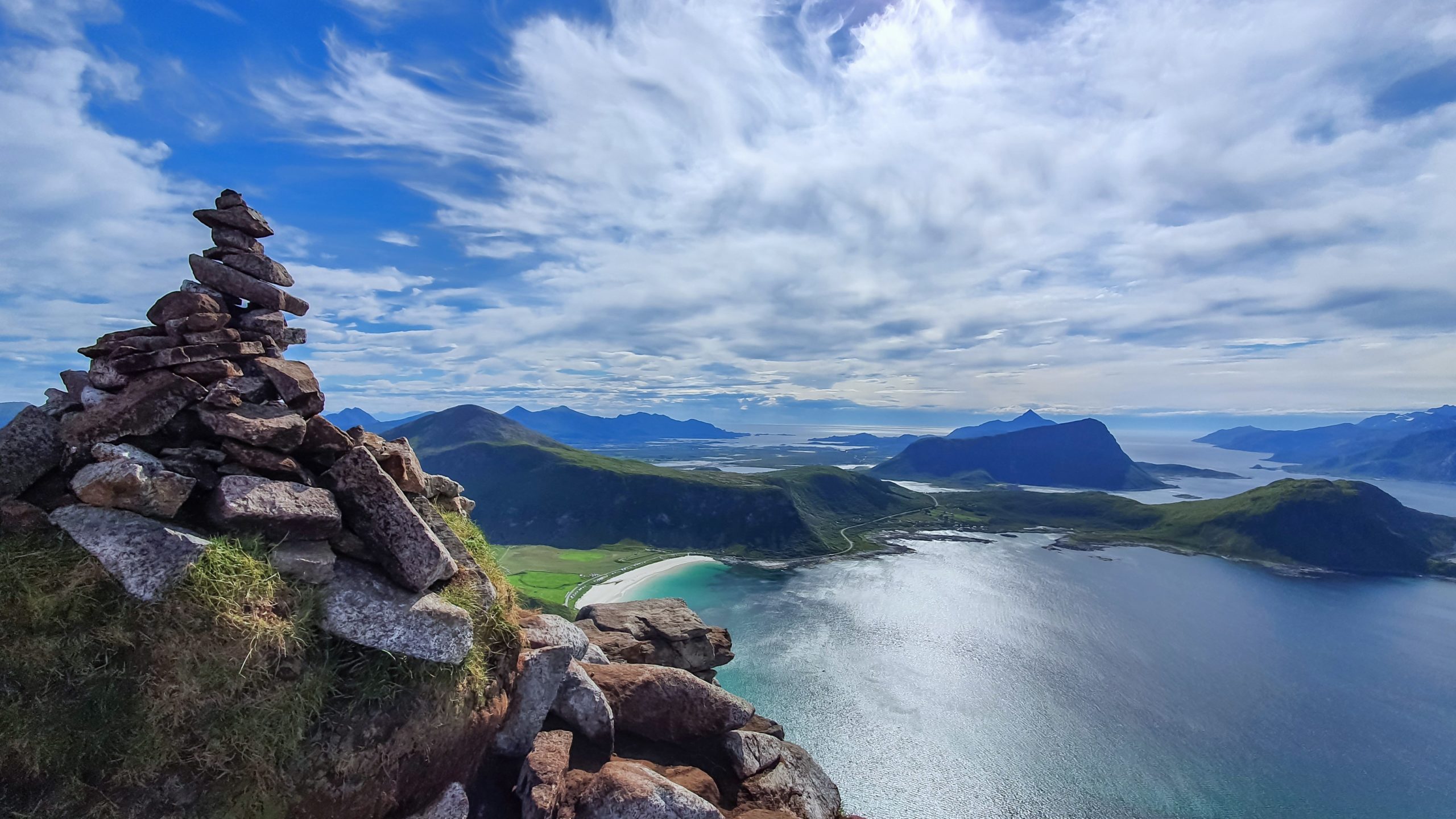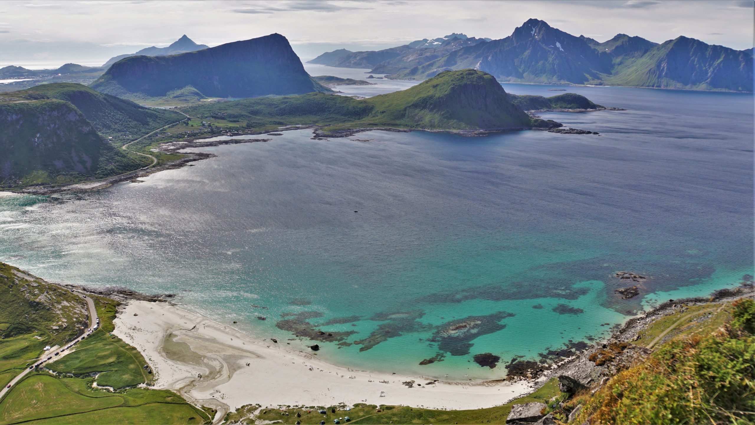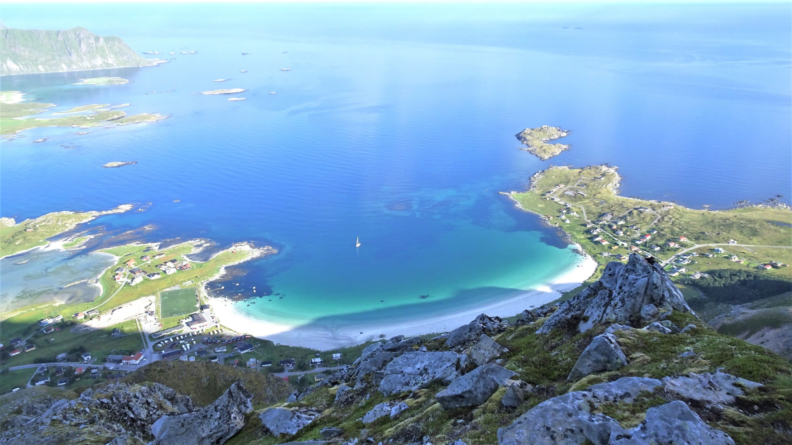 Je rentre ravie à la maison, on prépare le petit déjeuner et nous partons visiter la plage de Haukland avec une petite randonnée au sommet du Mannen.