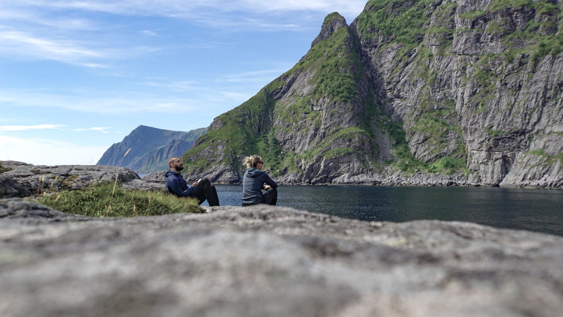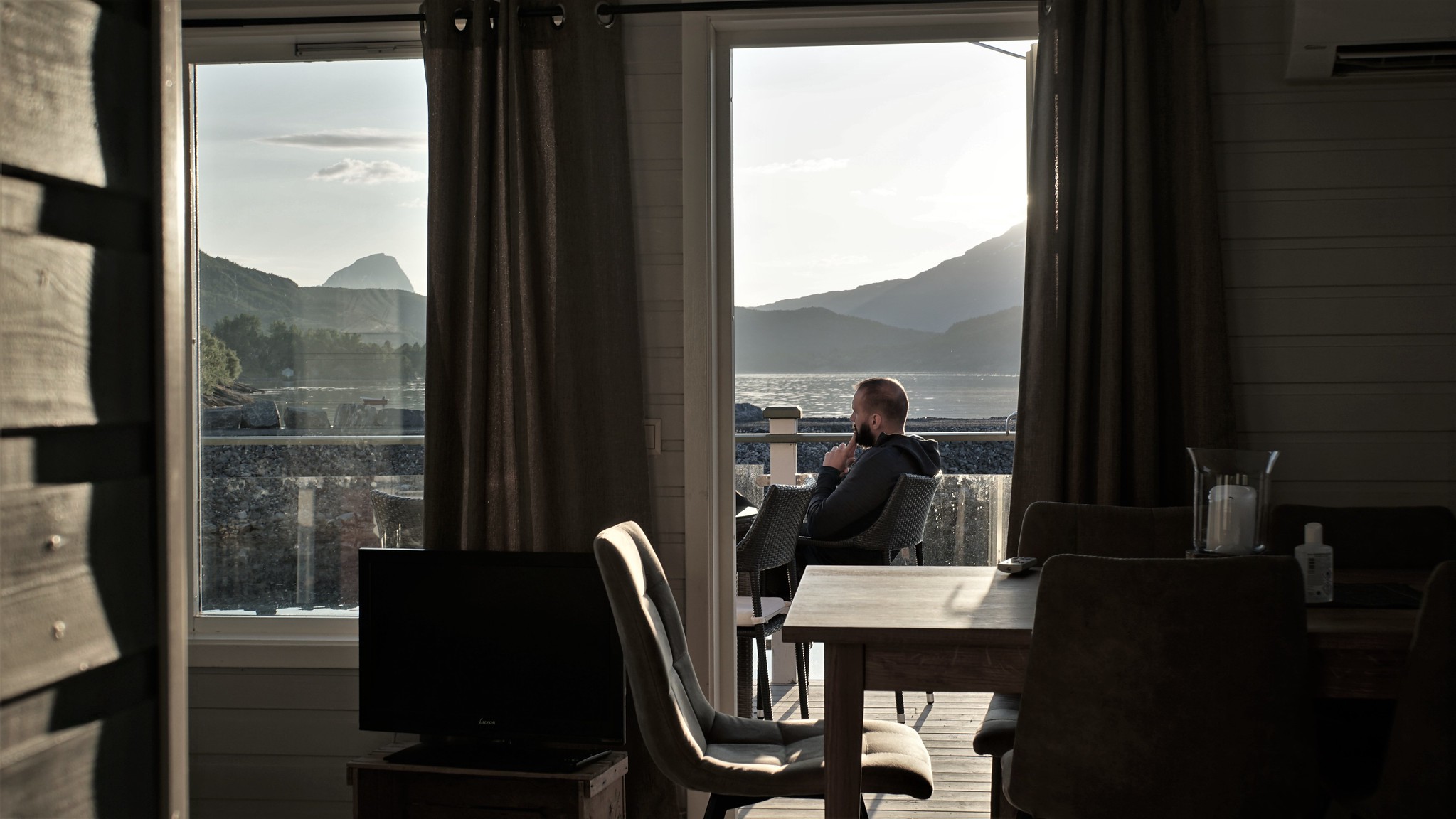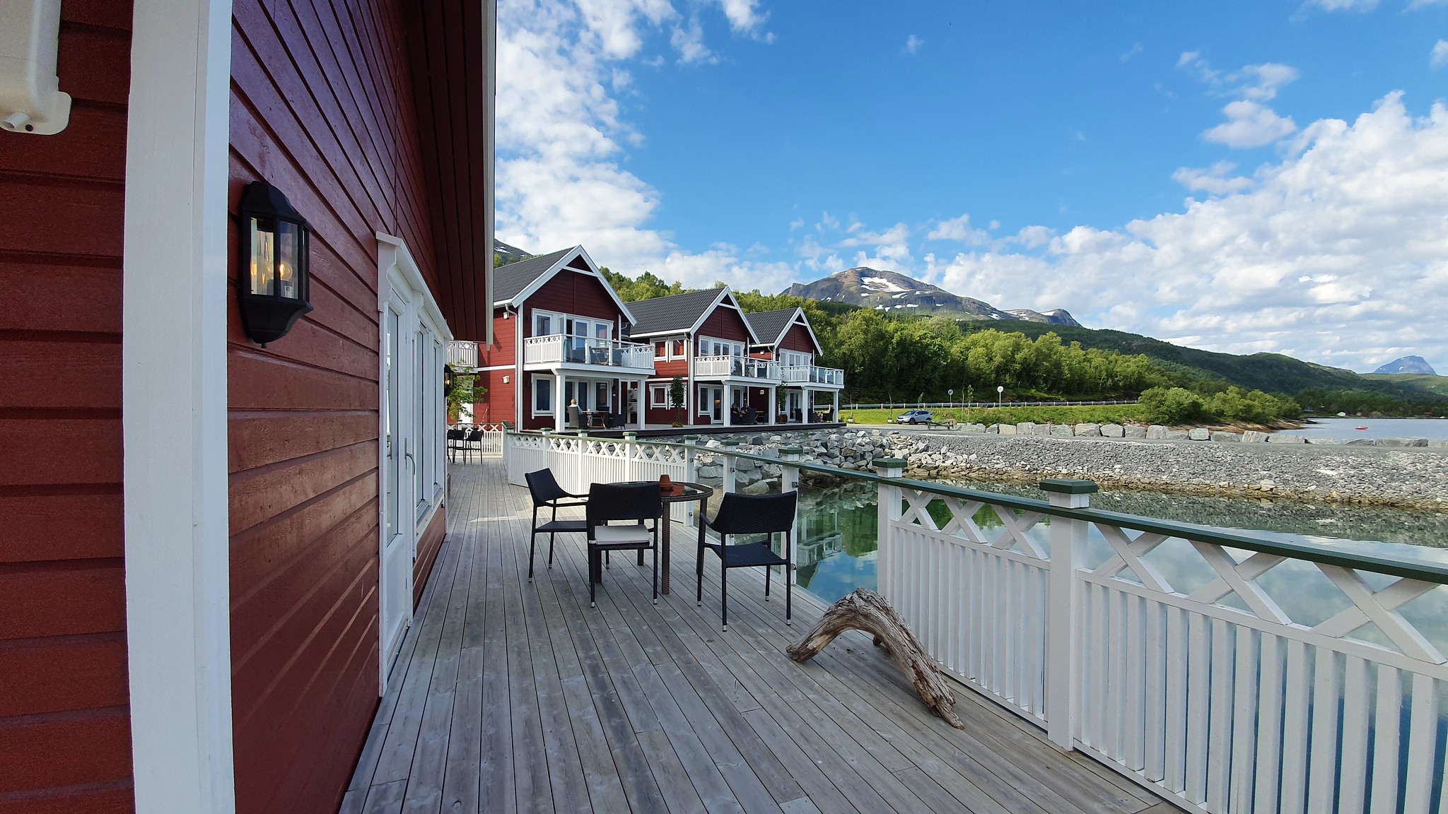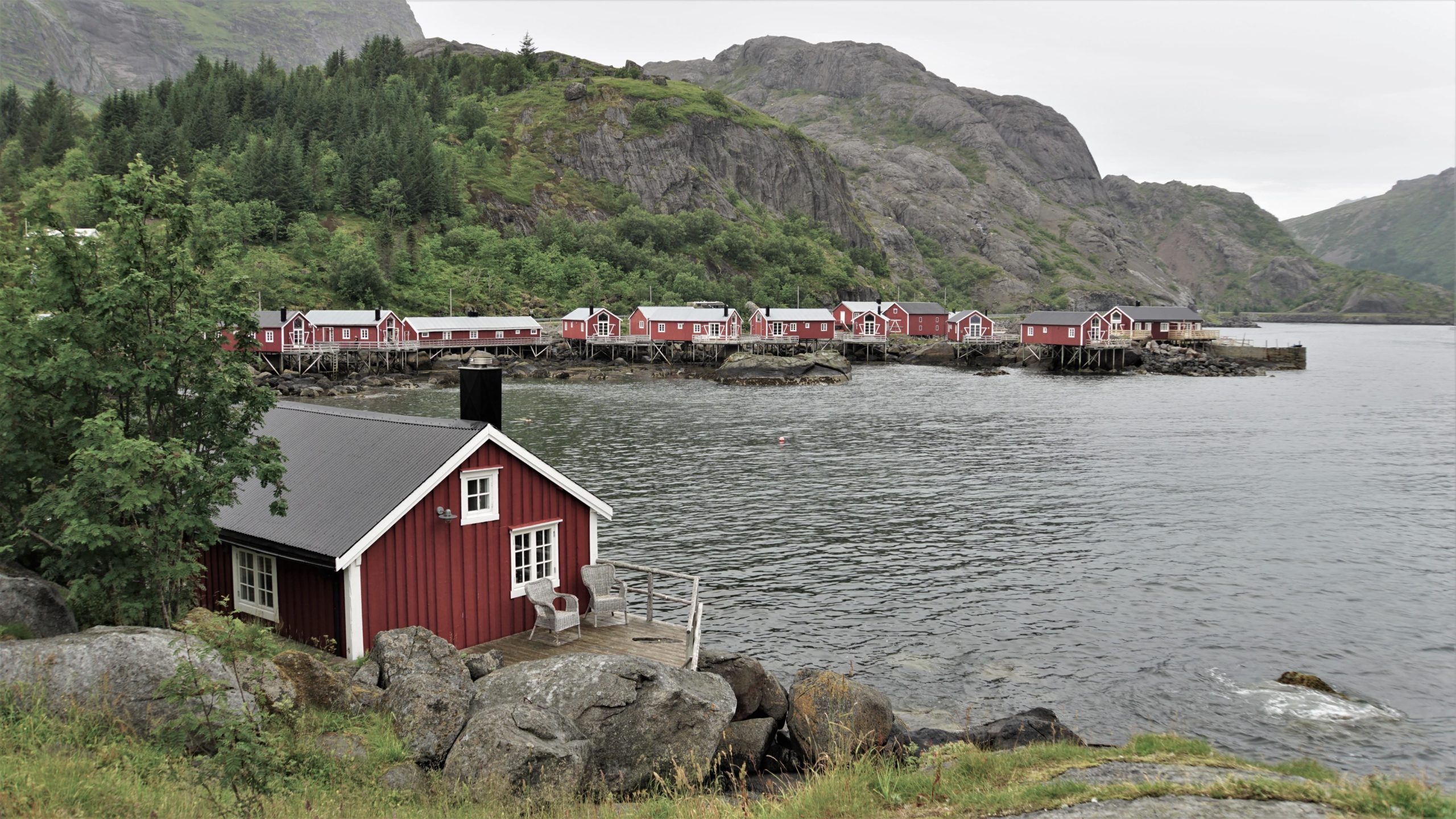 L’endroit a l’air très reposant, nous sommes au bord d’un fjord. C’est plutôt sympa.