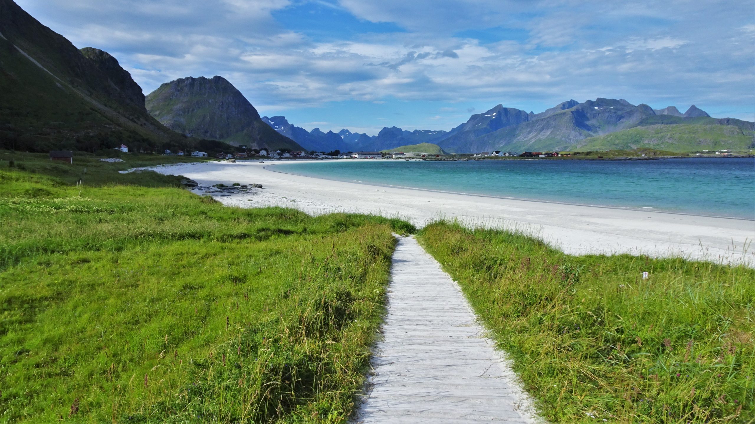 C’est déjà l’heure de quitter notre belle maison. Nous disons au revoir à Olga et nous partons nous garer à Fredvang. Je voudrais que Sylvain fasse la rando pour aller voir la plage de Kvalivka.