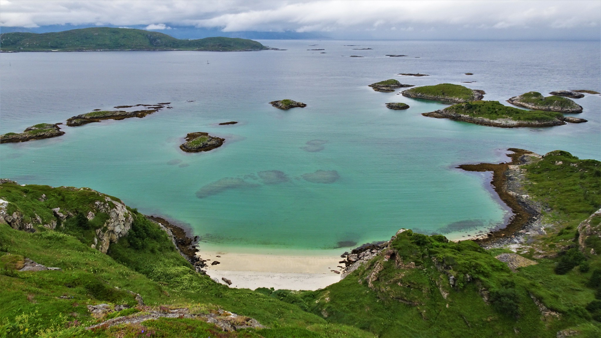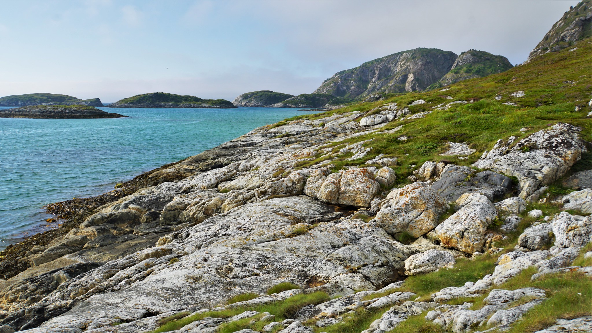 Nous partons explorer les petites plages, malgré le temps un peu gris.