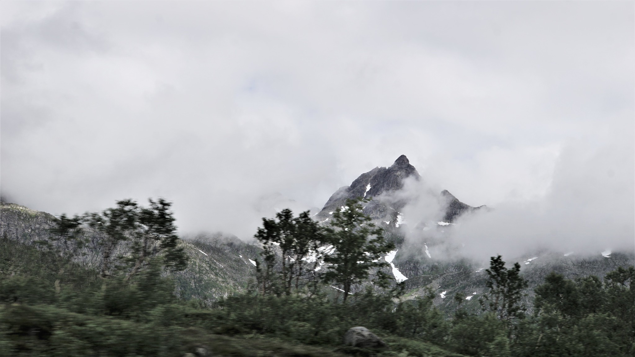 Plus on se rapproche des Lofoten et plus les paysages deviennent montagneux. Nous traversons beaucoup de tunnels aussi.