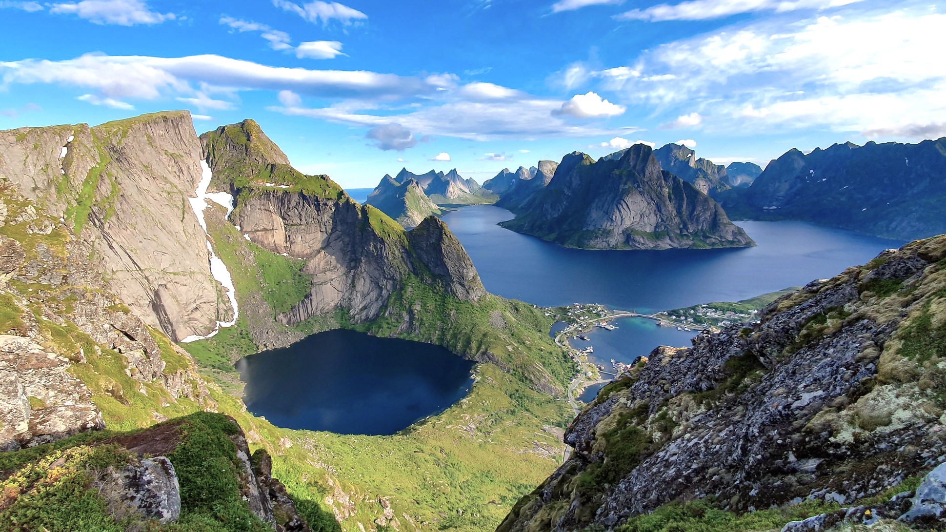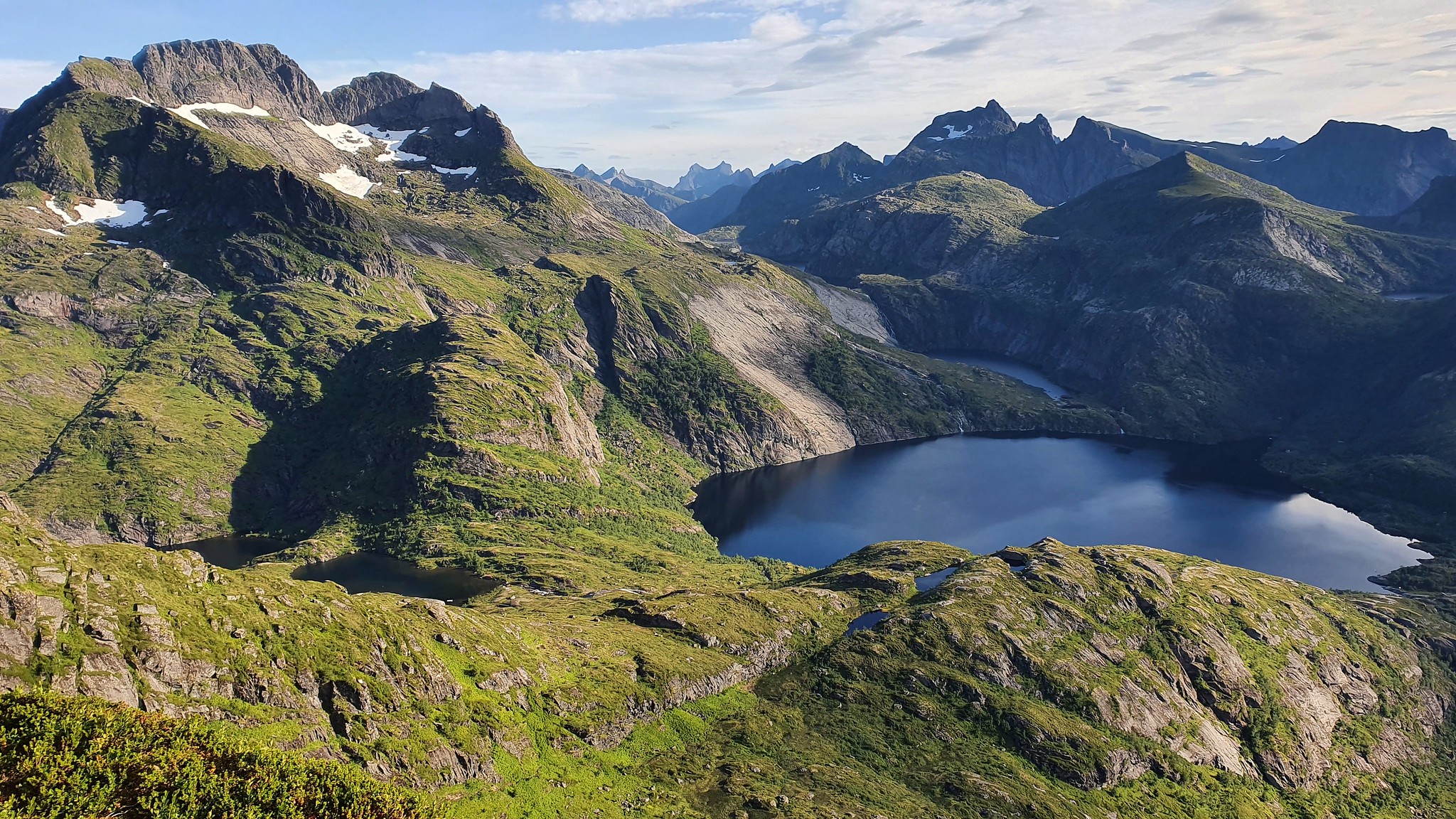 La vue est splendide : je vois le lac Ågvatnet qu’on voyait depuis le village de Å.