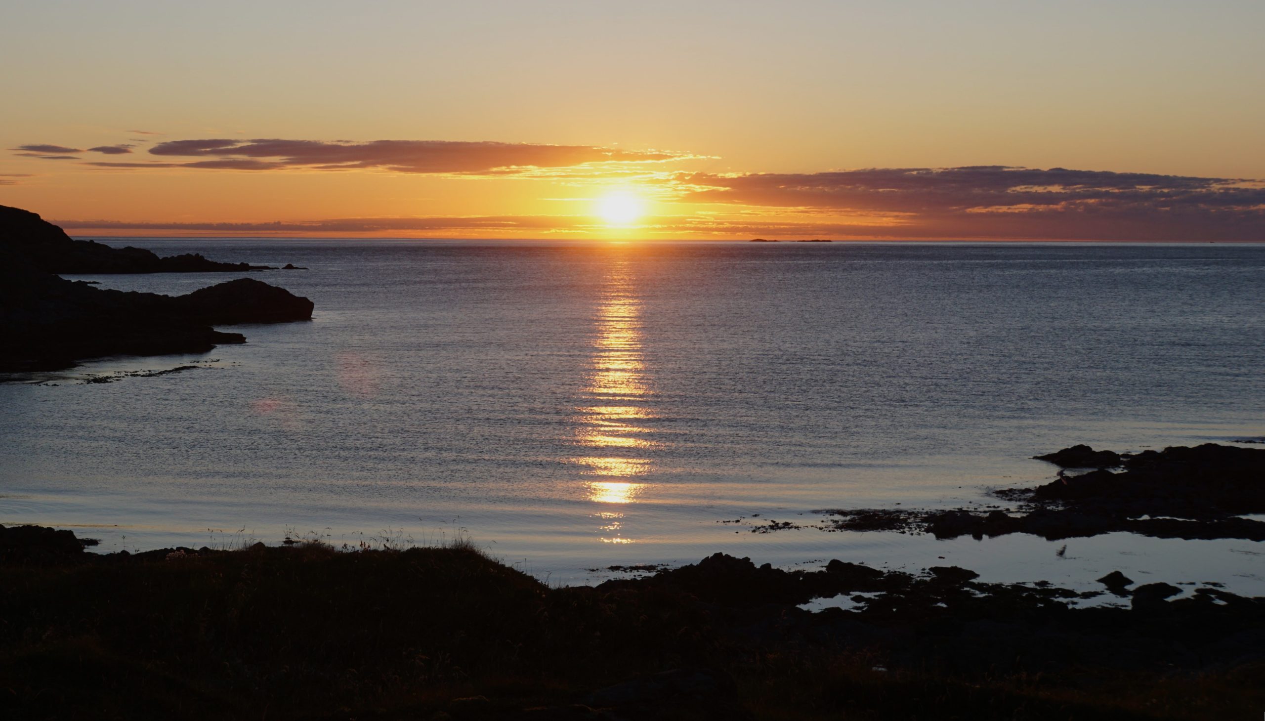 Nous revenons à la voiture, il est 23h30. Le soleil se couche sur l’océan, il remontera ensuite directement pour rester haut dans le ciel.